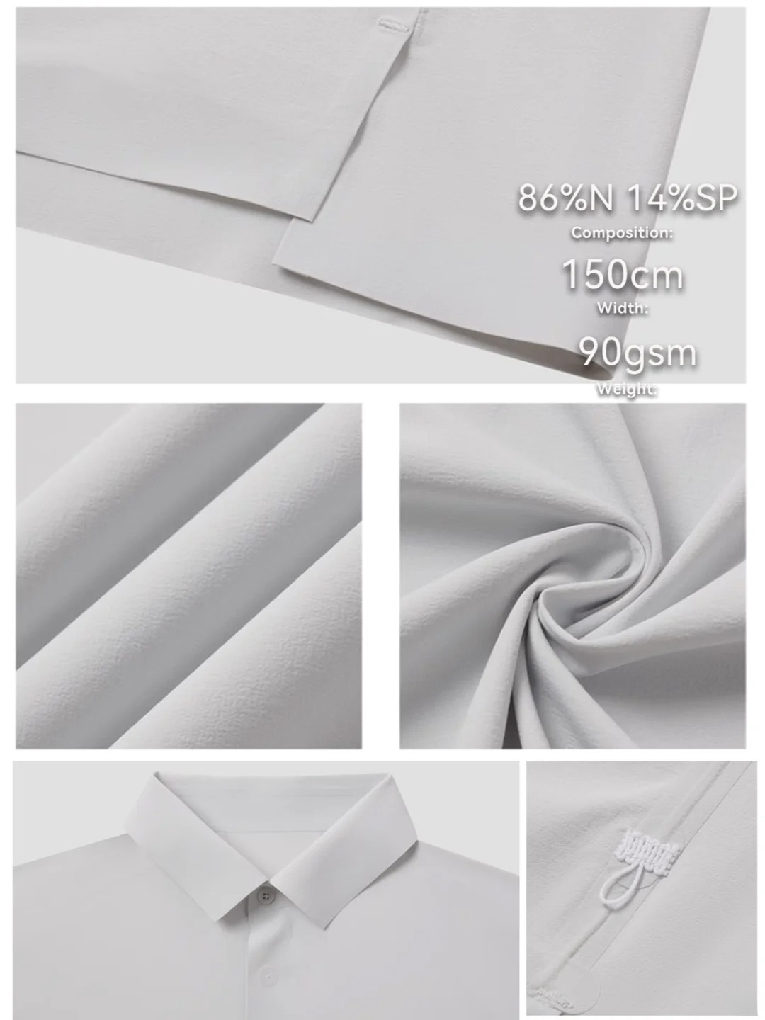 产品描述:克重心机:90g/m²属于“轻量级选手”(普通防晒衣约120-150g),叠加尼龙的柔软度,折叠后能塞进通勤包侧袋。 弹性边界:14%氨纶确保四向微弹(横向拉伸率约30%),比纯尼龙更贴肤,又不会像高弹面料那样贴身显肉。 色彩密码:浅色系防晒更强?错!深色面料靠染料吸收紫外线,浅色靠纤维反射,这款通过助剂加持,浅色也能实现高UPF值。
