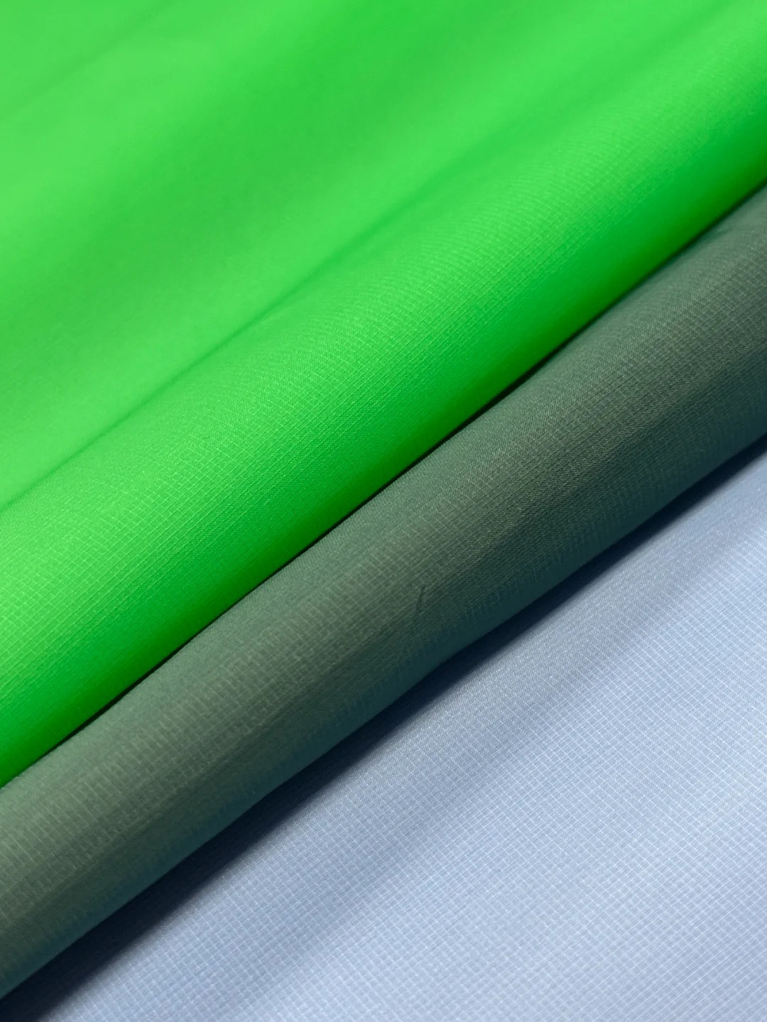 产品描述:蝉翼系列上新~这款超细纹的尼龙布只有32g,手感柔顺,可根据需求添加工艺~ 适合做25SS春夏防晒、运动装备辅料