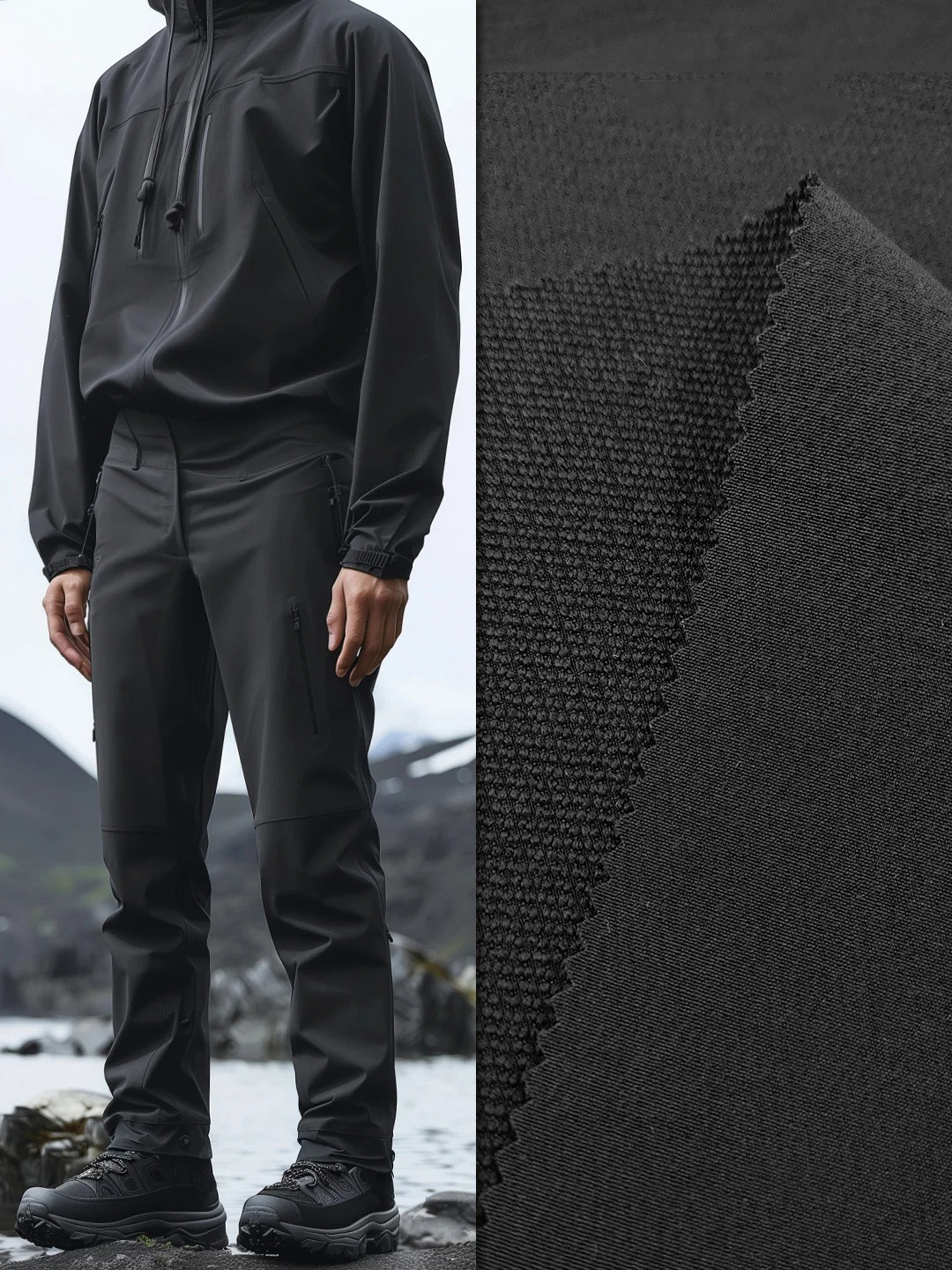 产品描述:新品户外软壳双链条风格尼龙登山布面料,锦氨四面弹力,表面防泼水,布面细微斜纹肌理风格,230gsm左右具有一定厚度,手感紧密扎实,背面立体双链条状结构,颇具质感和挺阔感,适用制作各类户外秋冬软壳夹克外套、软壳长裤等。