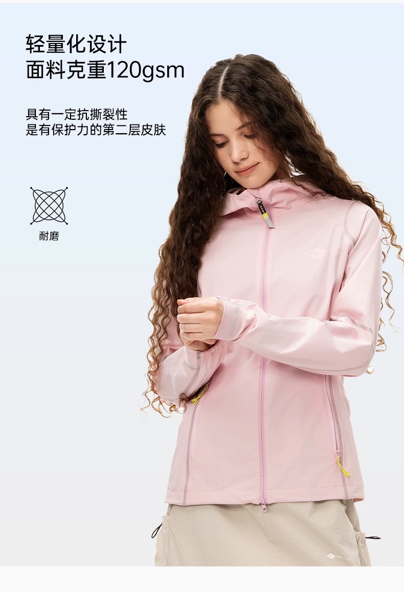 产品描述:0负担轻盈户外冲锋衣,采用哑光面料,轻盈柔软,抗撕裂。表面进行DWR防泼水处理,优秀的抗撕裂和耐磨性。防晒UPF100+,UVA/UVB<1%,可阻挡紫外线对皮肤的伤害。袖肘处立体设计,增加手臂空间,活动更舒适。定制双开撞色拉链,方便穿脱。