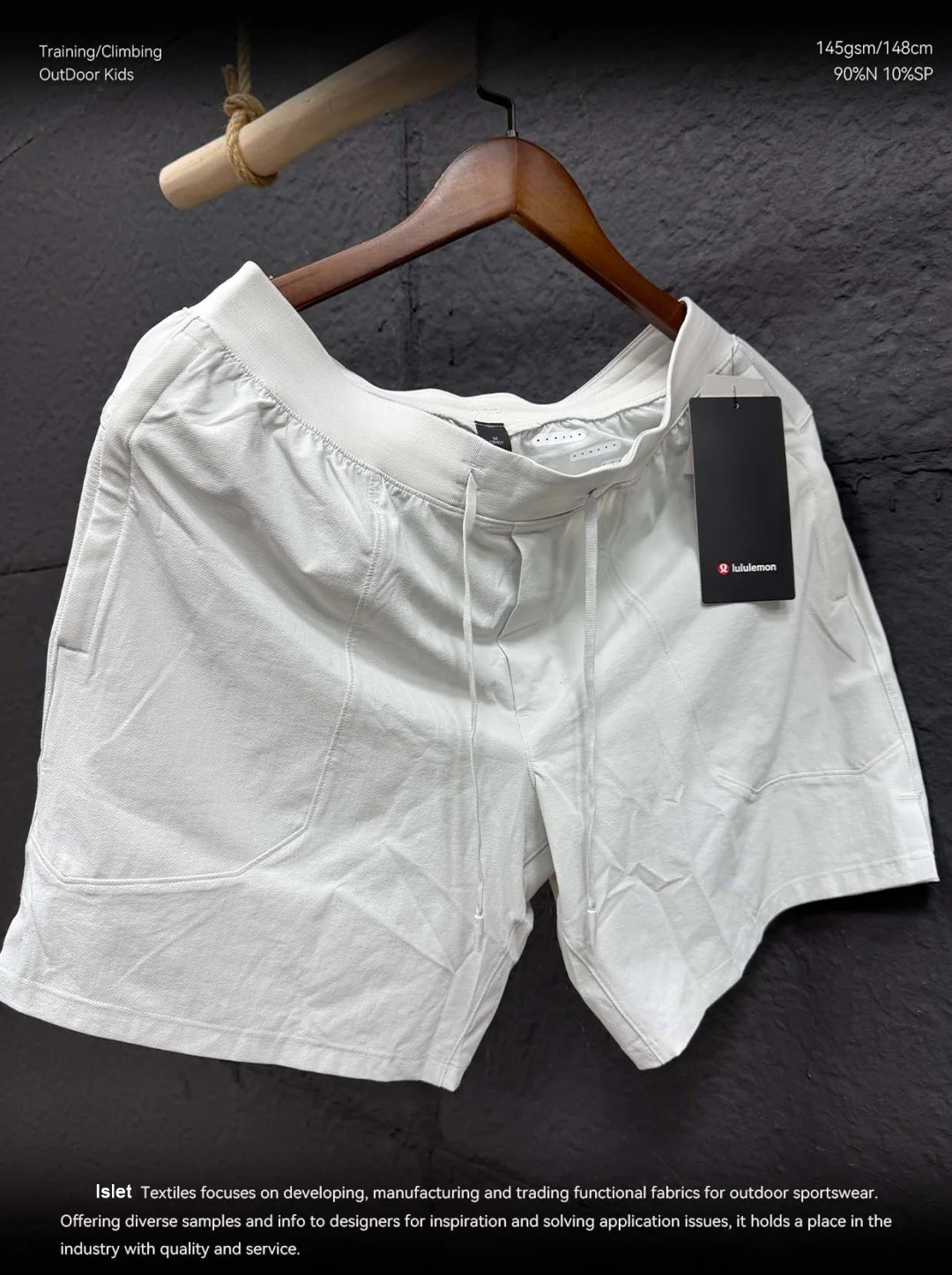 产品描述:「无内衬革命」浅色系直接上!省成本+减工艺 剪裁友好:工装裤/机能短裤/运动长裤万能适配 微哑光质感:高级感拉满不显廉价 → 多口袋工装裤+弹力腰头(健身→出街无缝切换) → 撞色拼接运动短裤(菱形纹理自带设计亮点) → 修身微喇裤型(四面弹力颠覆传统工装厚重感)