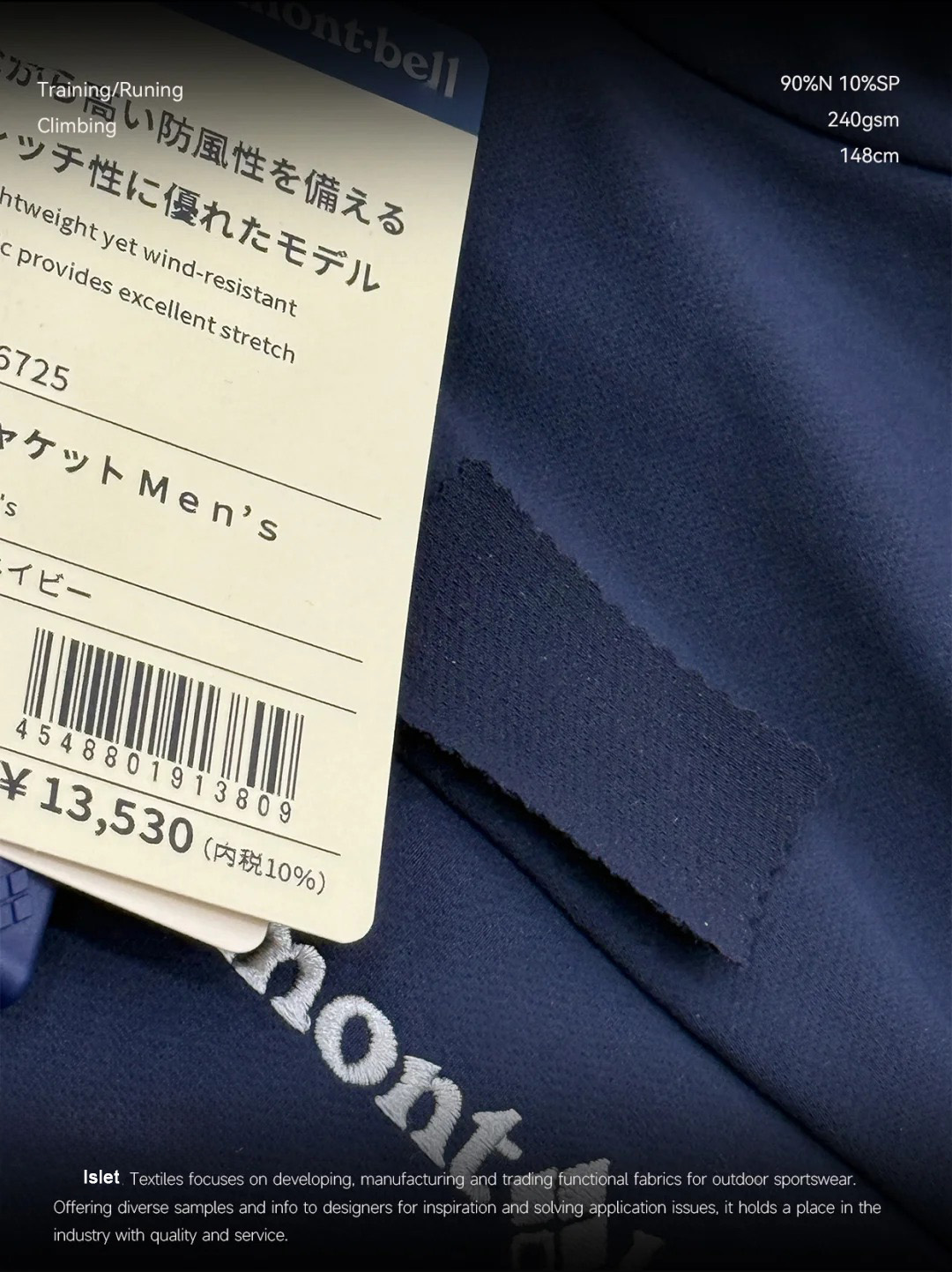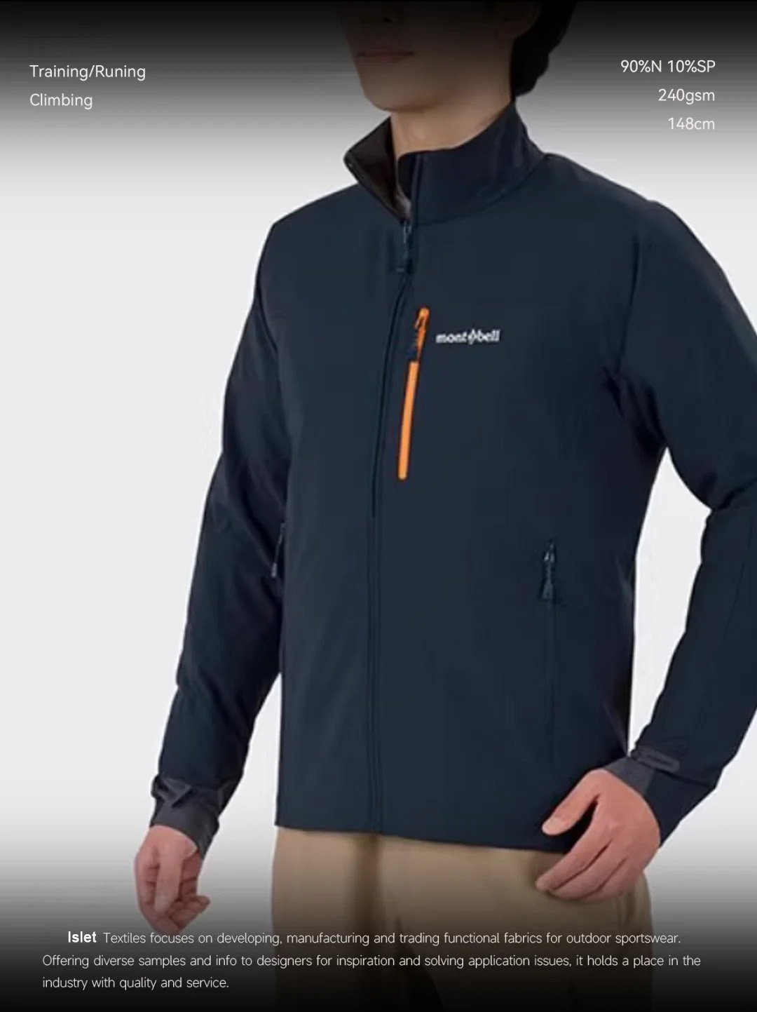 产品描述:四面弹力:拉伸回复率超稳!运动类服装(骑行裤/冲锋衣/运动外套)行动0束缚,版型不易变形~ 绵柔触感:一反传统硬壳的摩擦感!贴肤面单链条结构细腻亲肤,户外穿也拒绝摩擦噪音 拒水功能:小雨/泼溅水滴速滑落,通勤户外两用实用值拉满!