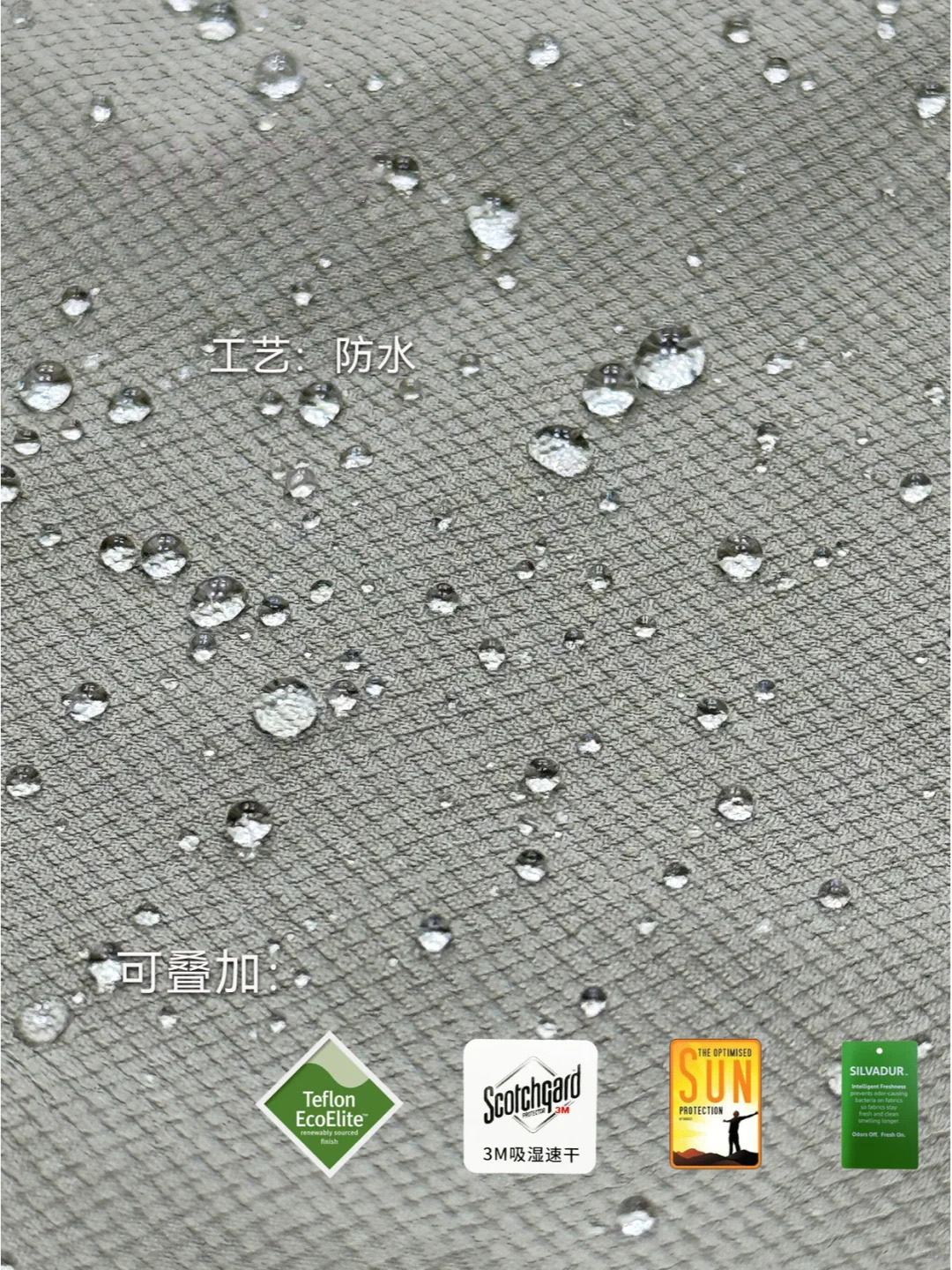 产品描述:面料采用的尼龙+氨纶的材料构成,这种构成方式让面料表面耐磨且富有弹性,在户外运动时兼顾了耐久性和舒适性; 其次表面做了防泼水处理,简单的脏污能轻松抵御,更好打理; 表面的纹理菱形格也让面料和皮肤之间产生了缝隙,更好排气,不至于和皮肤粘连~更干爽
