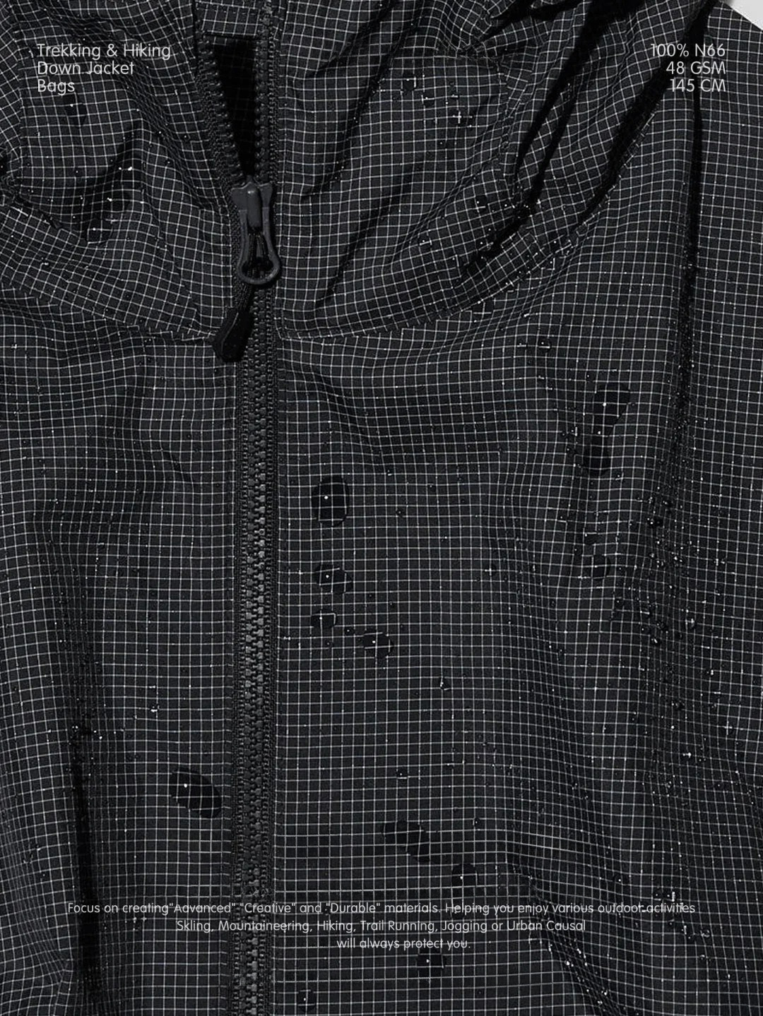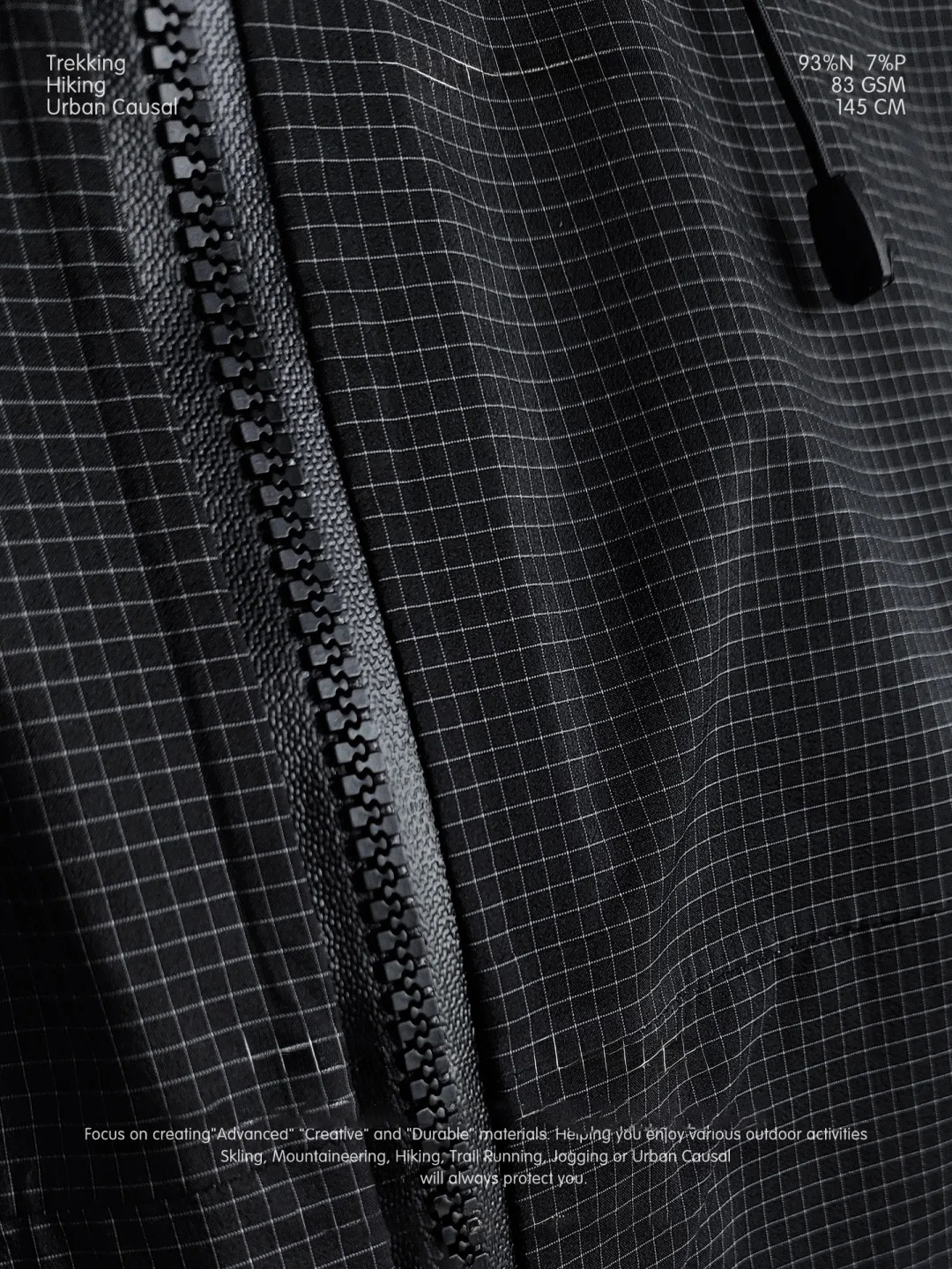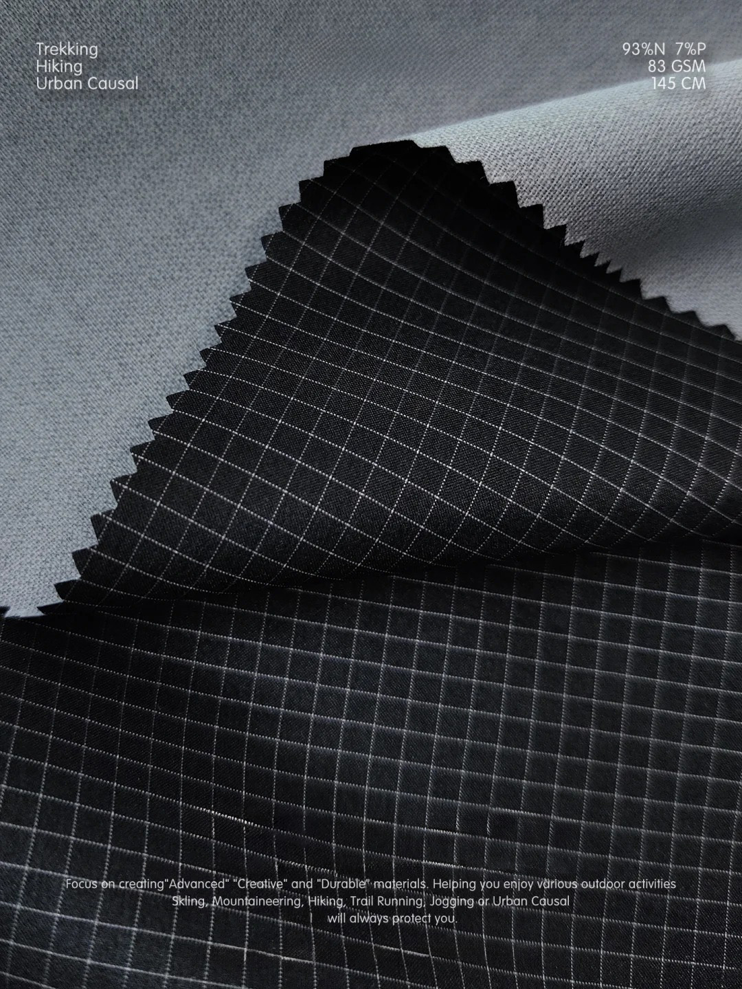产品描述:新品锦涤格子3L功能性面料,独特白色单线格纹,DWR强防水4级,防风,轻量化(平方米克重83gsm),3L复合结构,耐静水压国标8000+,可防暴雨,透湿性10000+,出汗不闷,多色可选,适用制作户外冲锋衣硬壳、冲锋裤、功能性夹克、秋冬功能性羽绒棉服等。