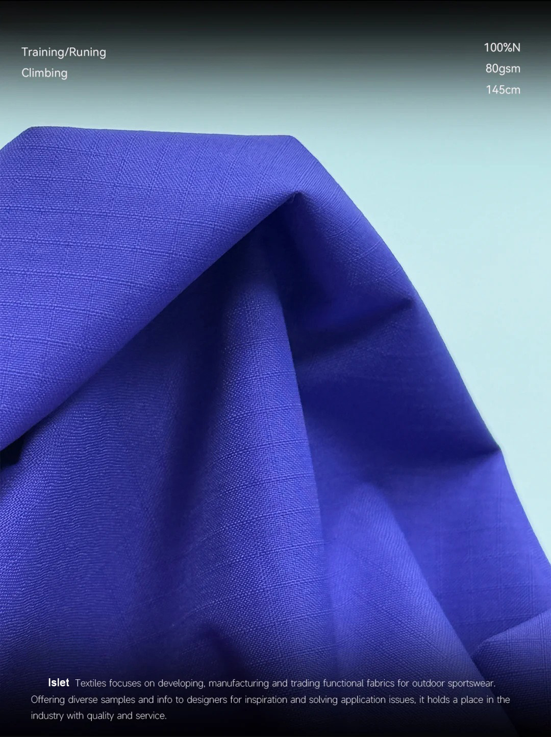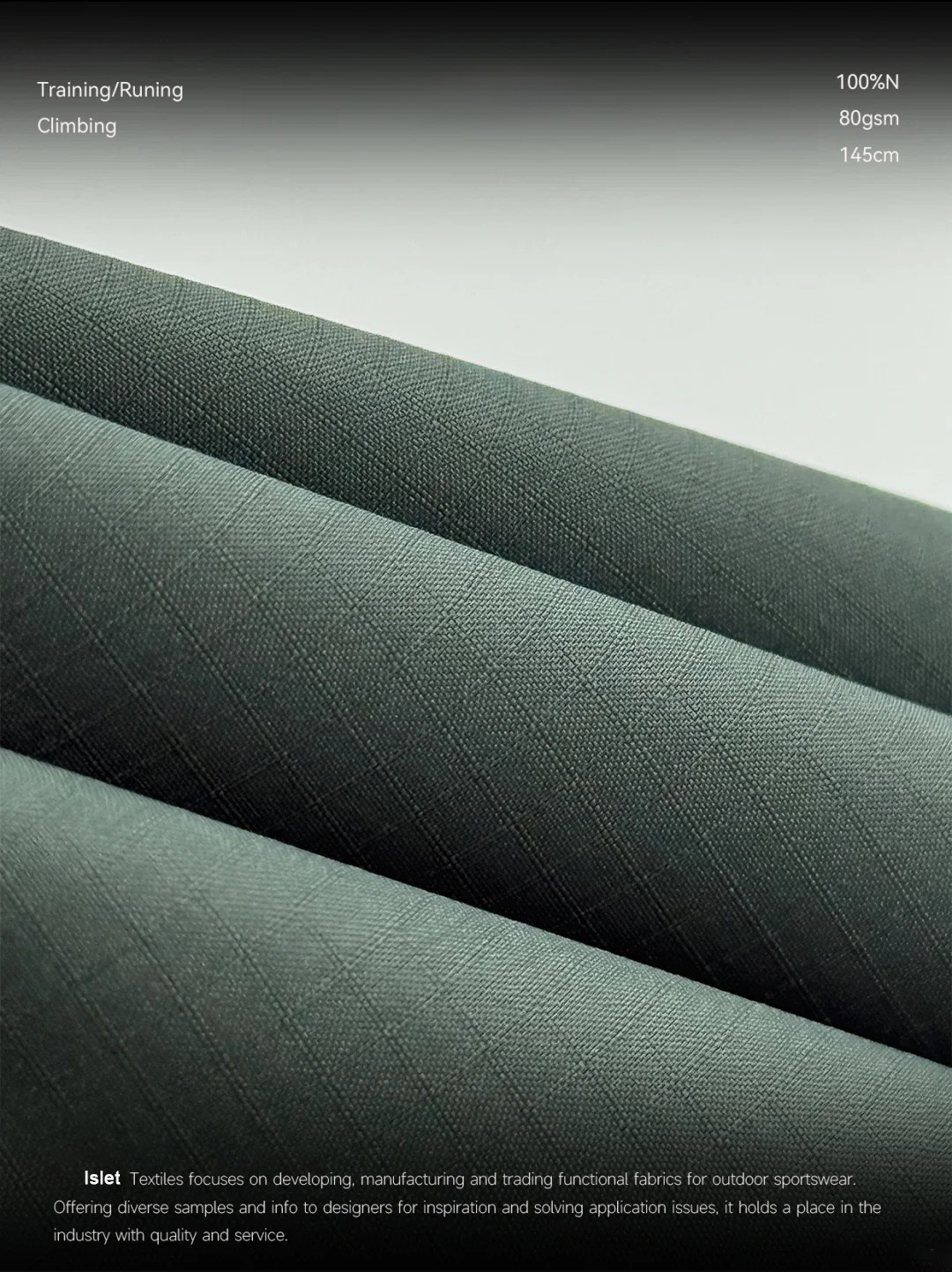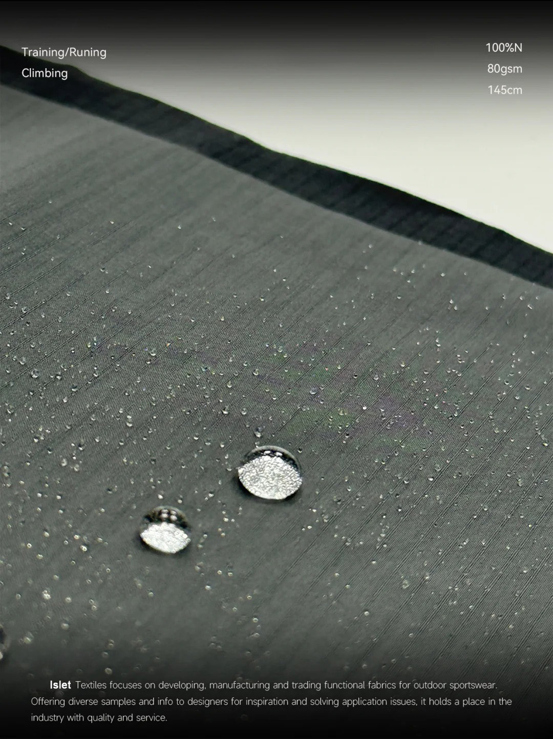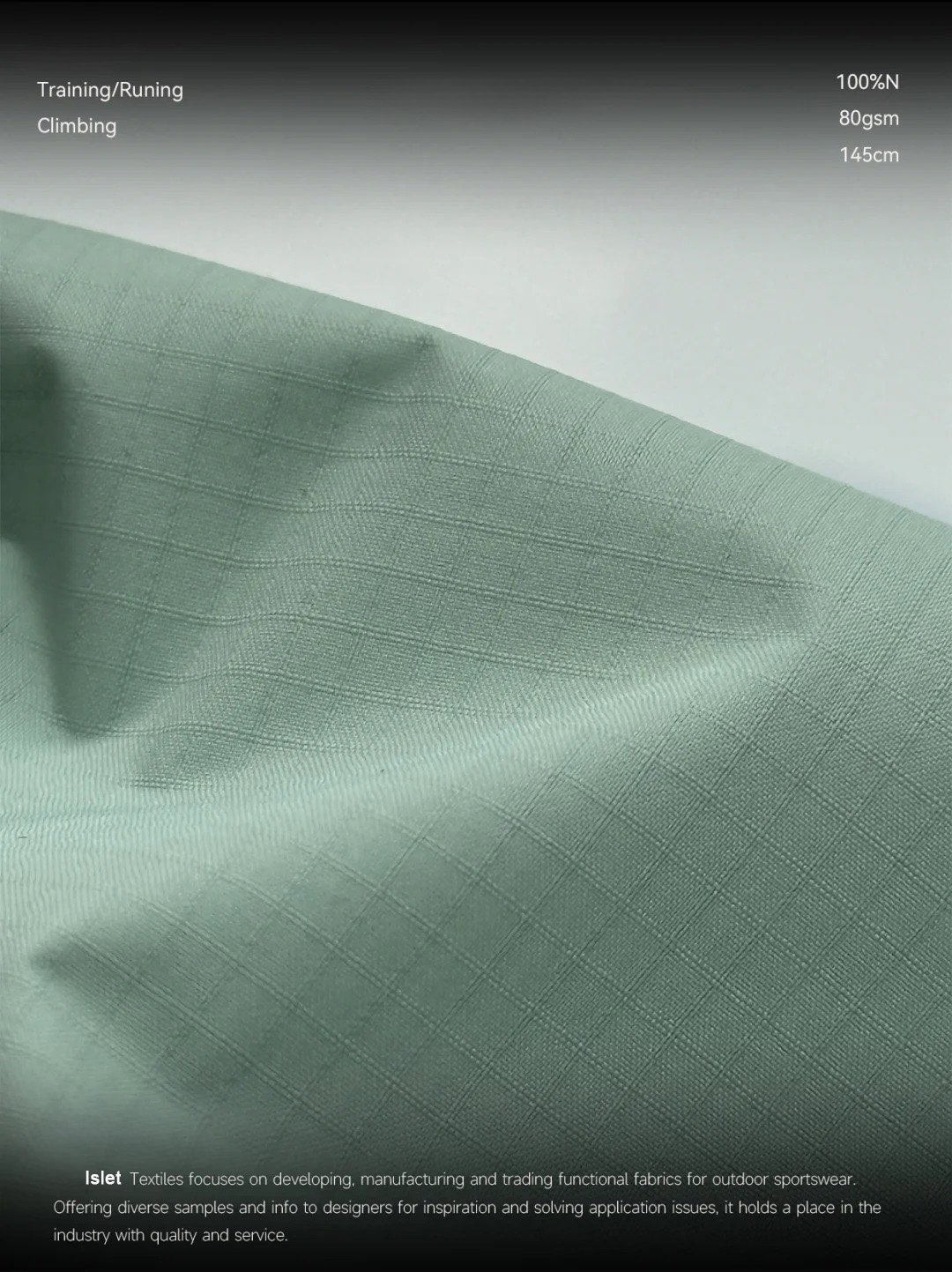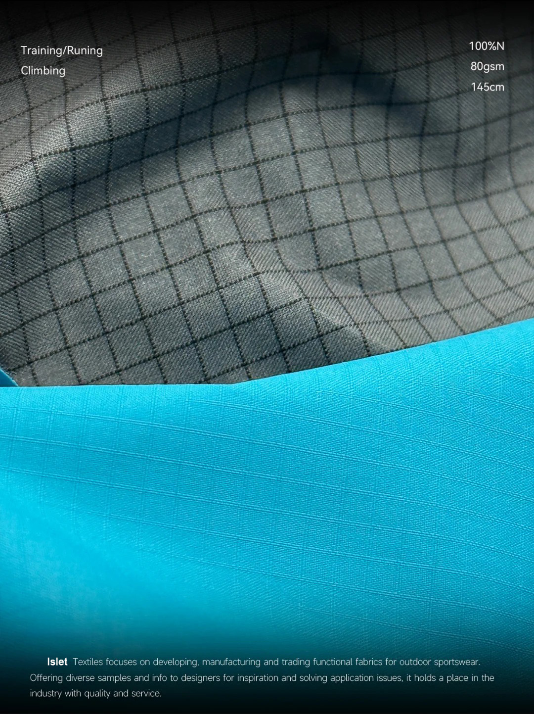 产品描述:极致轻量,性能不减! * 克重仅 87G!轻若无物,却能提供出色的防护性。 * 100%尼龙 基底,保证了面料的强韧耐用。 实用派功能:防泼水! * 自带 防泼水功能,轻松应对日常小雨或泼溅,保持内里干爽。 * 是制作功能性服饰的绝佳基础选择。 质感纹理:0.3双线格! * 经典的 0.3双线格纹理,低调有质感,赋予成品高级的视觉层次感和挺括度。 * 这种纹理正是大牌硬壳冲锋衣、风壳常用的标志性肌理!一眼就能看出品质感!